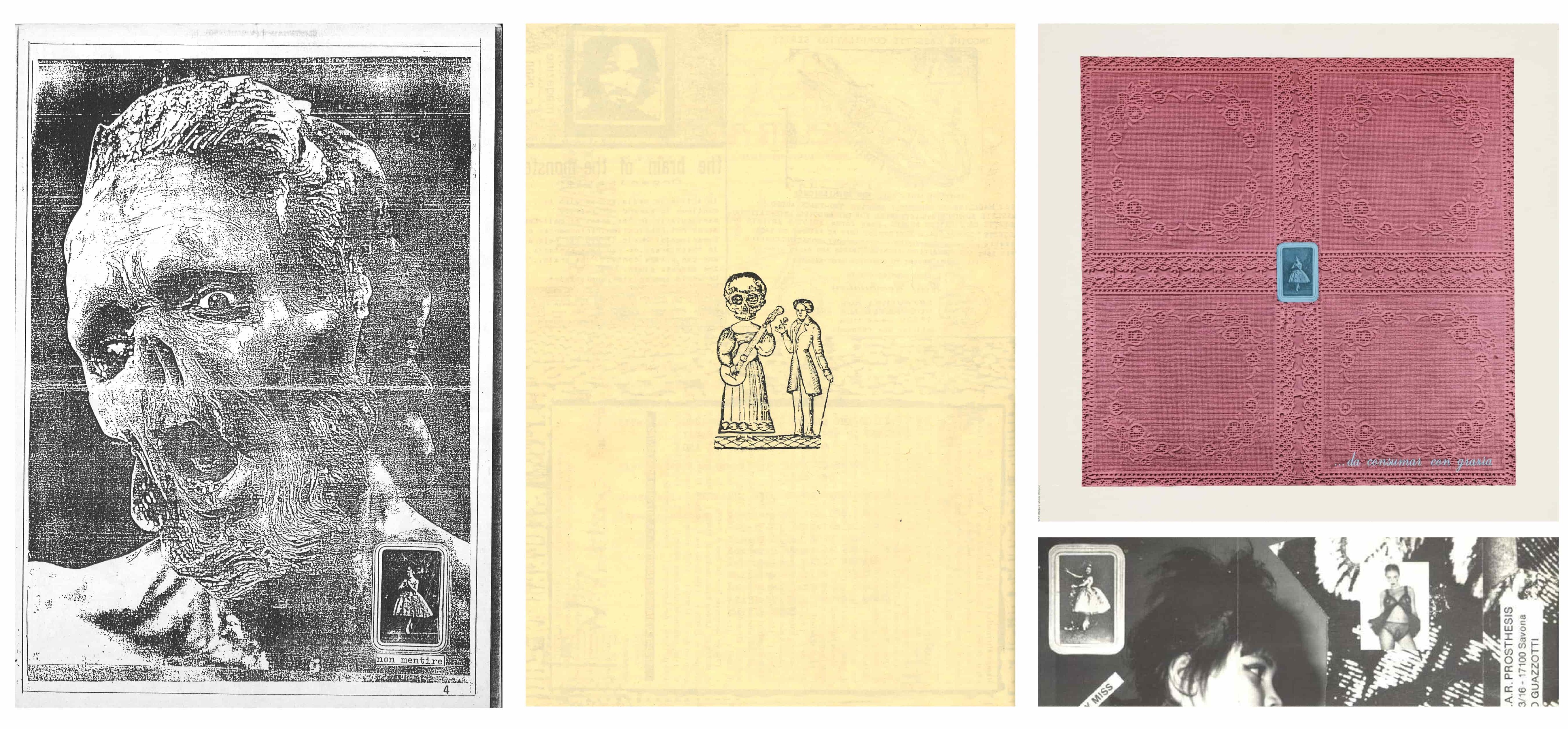 Another aspect that fascinates me—or rather, has been haunting me for years—is the presence of that composed, puritan lady on the back of the LP cover. When I first got my hands on this vinyl, it wasn’t the first time I had encountered her, which left me quite disoriented. Flyers, fanzines, random mimeographed sheets dating back to the 80s — always in the same three-quarter pose, gently staring at me. That lady appeared countless times during my research sessions in the XEROXED archive, yet I couldn't, and I still can’t, tell what’s her origin, where she comes from, what she wants. I like to imagine that the zinesters, self-publishers and musicians placed her in their zines for a reason, and that she carries some sort of subliminal message, or is the idol of some secret movement. Most likely, as with much of the material to be found in zines and Italian countercultural publishing from the 70s and 80s, she was stolen, re-scanned, modified, and republished for no specific reason — gradually becoming more and more grainy and losing her facial features.