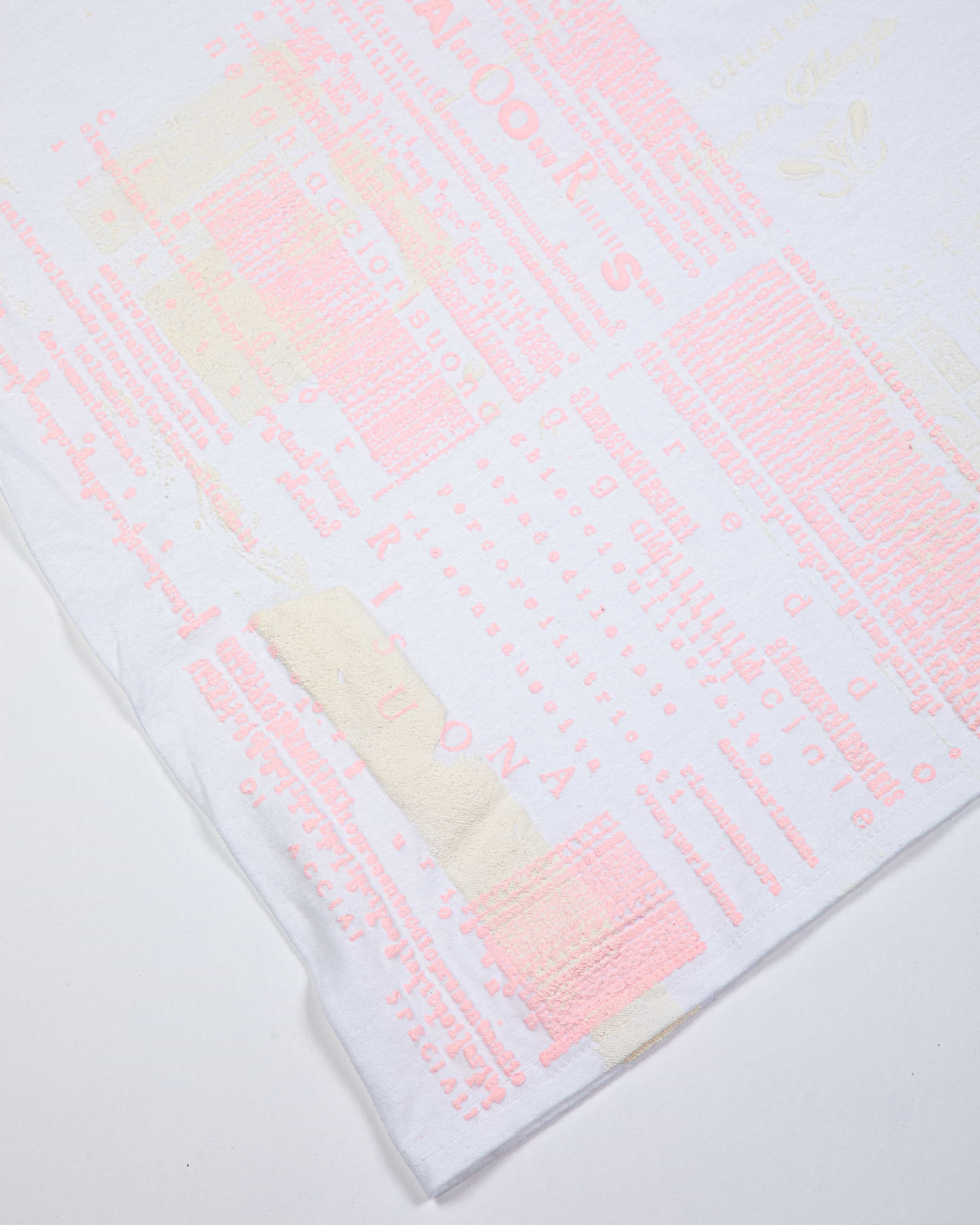 The rest of the analogue pastiche came together quite naturally, and initially I kept it aside without wanting to use it for anything specific. Earlier this year, I thought that perhaps 2025 was the right time to make the lady come out of her cryogenic sleep and let her circulate once again, just as she did in 1985. That’s when I began experimenting with printing the artwork on fabric, using white inks mixed with puffing base.