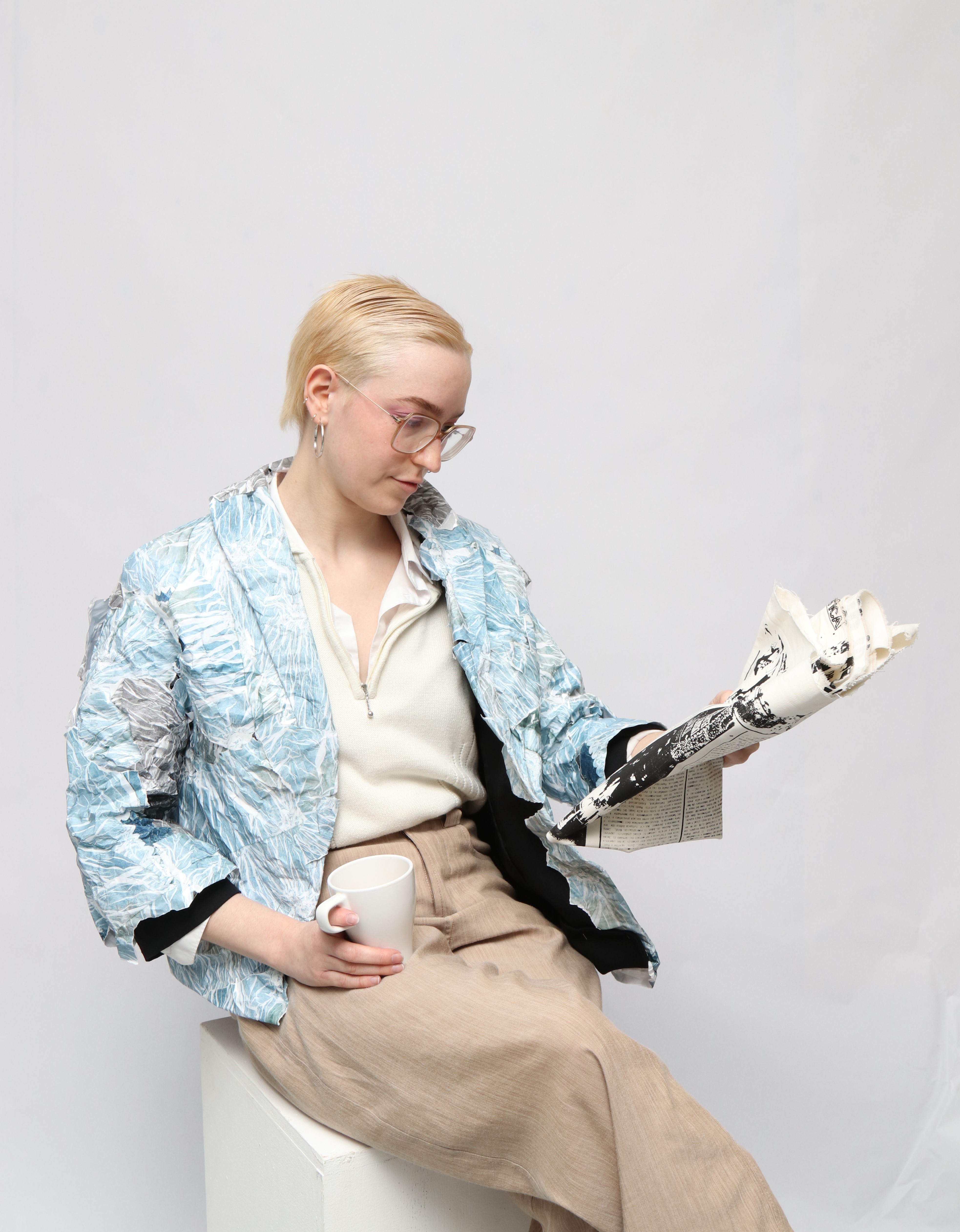 Jacket printed with offset print, fabric printed with silkscreen printing.